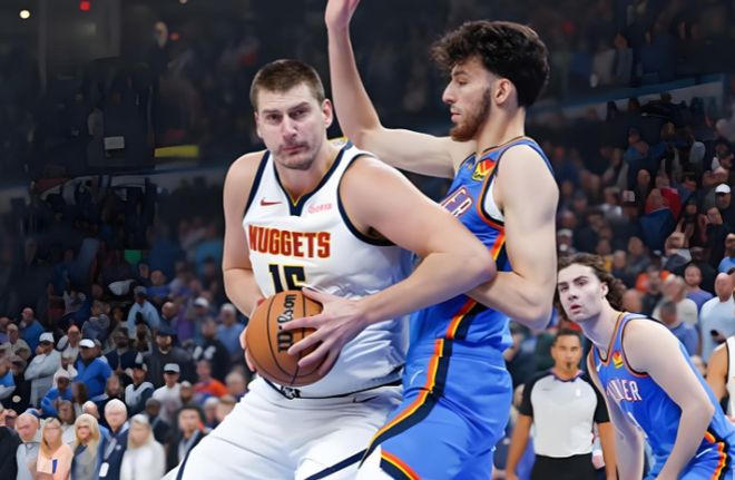 至于约基奇,他对切特的威胁不在于高度而在于体型吨位和进攻选择,当约基奇在低位或者肘区进攻时,切特必须在单防和提前协防间做出选择,一旦雷霆选择包夹,外线轮转就会被拉扯,而如果选择单防,约基奇面对切特就是完全的优势对位了。
