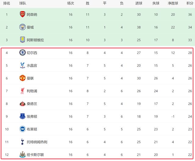 - 英超形势:2强紧咬阿森纳!曼联利物浦等4队同分,下轮4场焦点战
