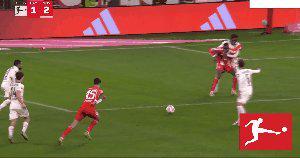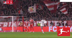 87’ 凯恩禁区内被放倒,主裁判罚点球,凯恩主罚命中,拜仁将比分扳成2比2。
